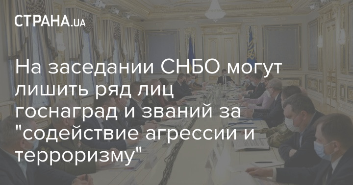 На заседании Совета нацбезопасности, которое запланировано на пятницу, 26 февраля, в числе прочих вопросов собираются рассмотреть возможность лишения государственных наград, воинских и почетных званий лиц, которые, как считают власти, "замешанны в содействии российской агрессии и терроризму".