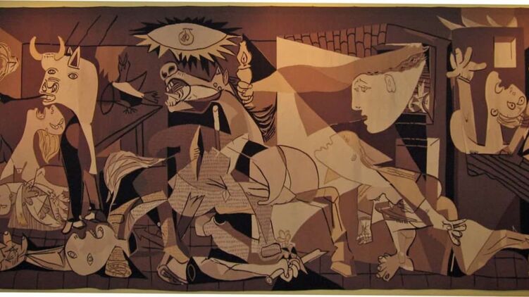 Картина "Герника" была представлена в 1937 году. Она получила название в честь города в Стране Басков, который подвергся бомбардировке во время гражданской войны в Испании.