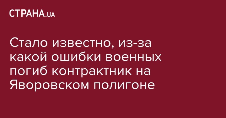 Как сообщала "Страна", на Яворовском полигоне во время учебных стрельб погиб контрактник. Военнослужащий скончался по дороге в больницу. По предварительным данным, трагедия произошла из-за нарушений требований к безопасности во время проведения военных учений.