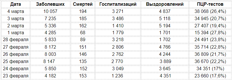 Также заметно, что стали делать больше ПЦР-тестов. Что обычно вызывает и рост негативных показателей. Впрочем, заметно, что и позитивность этих тестов возрастает и подбирается к 30 процентам.