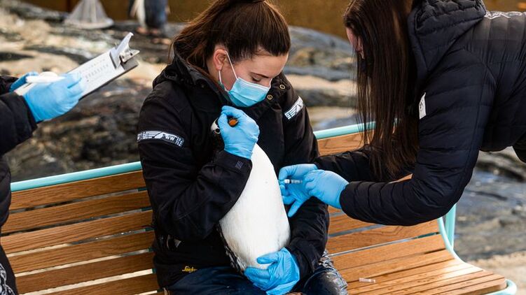 Все пингвины должны быть вакцинированы двумя дозами, прежде чем аквариум сможет снять брезент, временно накрывающий их вольер. Но через несколько дней после второго укола пингвины смогут снова начать встречаться с посетителями зоопарка.