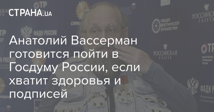 "Я могу пойти в Госдуму России при условии, что буду достаточно здоров для этого. Далее мне нужно найти единомышленников и собрать определенное количество подписей", - сказал Вассерман.