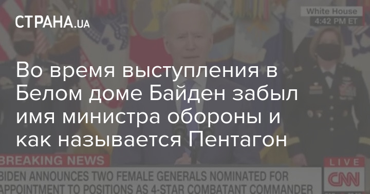 Во время объявления в Белом доме о назначении двух женщин-генералов в качестве руководителей военными подразделениями США президента страны Джо Байдена подвела память. 78-летний лидер забыл имя министра обороны Ллойда Остина и название возглавляемого им ведомства - Пентагона.