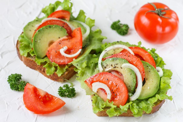 Предлагаем приготовить быстрые бутерброды из цельнозернового хлеба с помидорами и авокадо. Можно использовать зелень (руккола, шпинат, петрушка), лук или салатные листья. Сверху присолить по желанию.