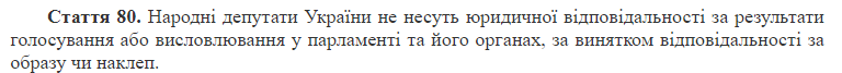 Статья 80 основного закона однозначно трактует - депутаты не могут нести юридической ответственности за голосования или высказывания в парламенте.