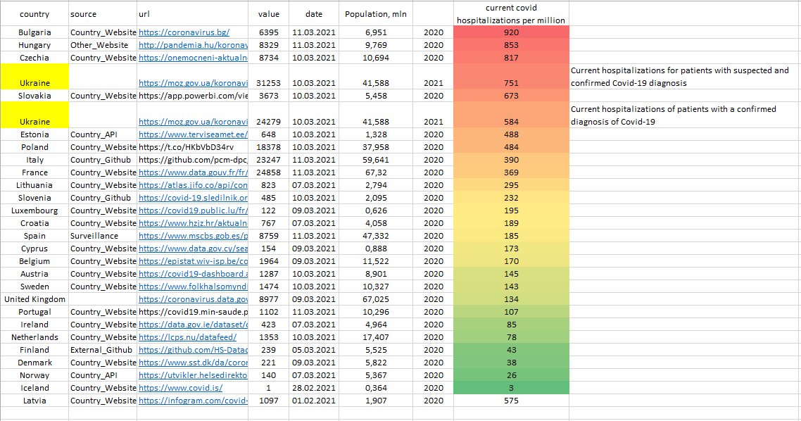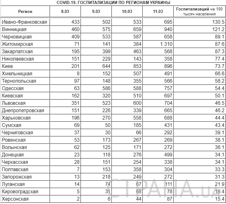 Он также приводит свои расчеты по сравнению госпитализаций в Украине и ЕС.