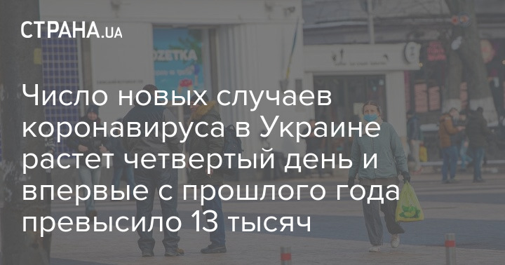Число новых случаев коронавируса в Украине растет четвертый день и впервые с прошлого года превысило 13 тысяч