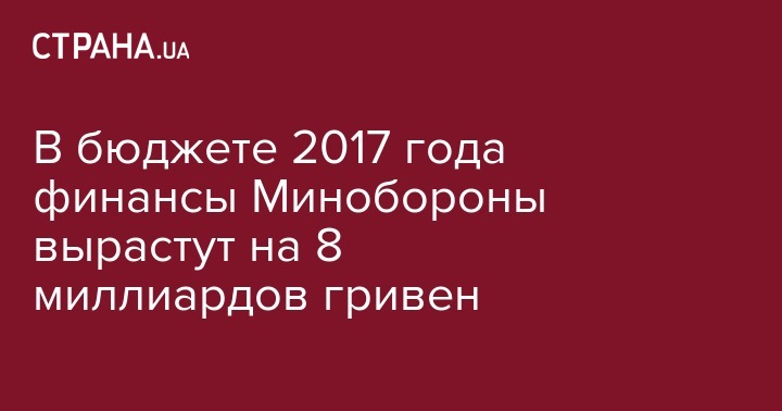 В бюджете 2017 года финансы Минобороны вырастут на 8 миллиардов гривен