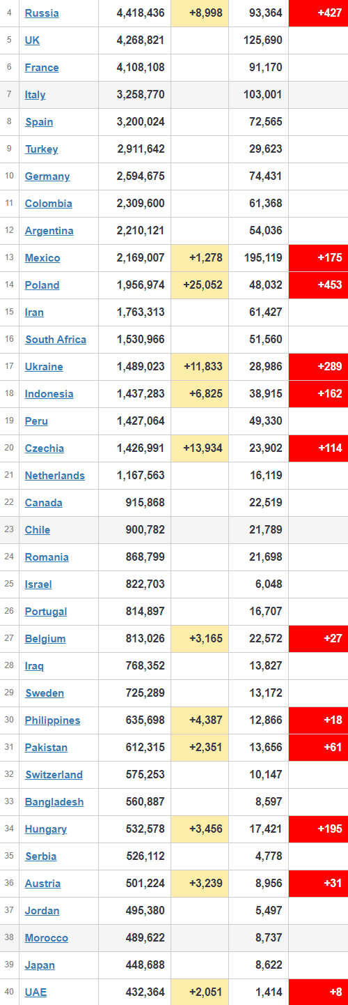 Среди мировых стран Украина занимает лидирующее положение по показателю дневной смертности от коронавируса: