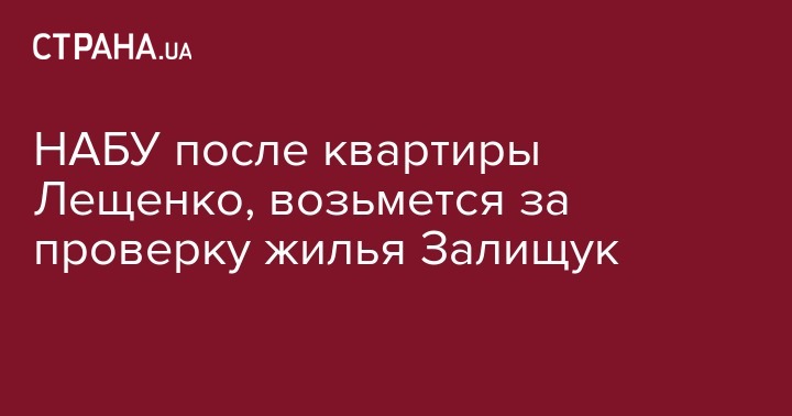 НАБУ после квартиры Лещенко, возьмется за проверку жилья Залищук