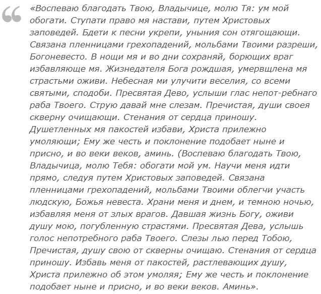 Дева Мария - покровительница женщин и детей, ей молятся об освобождении от одиночества и даровании любви, исцелении от бесплодия, семейном благополучии, очищении от грехов, помощи детям. Но главное не правильная молитва, а искренняя вера.