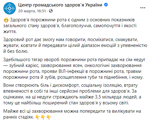 Об этом информирует Центр общественного здоровья (ЦОЗ) Минздрава в Фейсбуке.