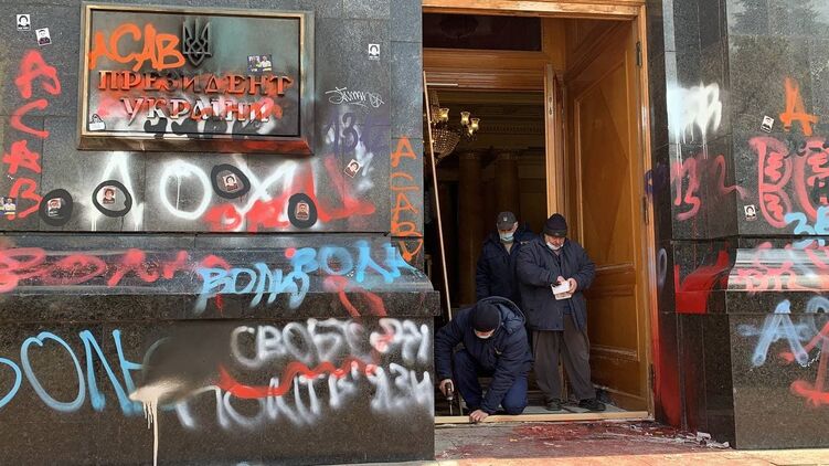 Десяток компаний соревнуется за право очистить Офис президента от надписей погромщиков