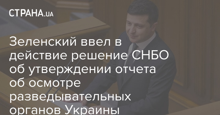 Президент Украины Владимир Зеленский подписал указ о введении в действие решения Совета национальной безопасности и обороны (СНБО) от 23 марта 2021 года об утверждении отчета о результатах проведения осмотра разведывательных органов Украины.
