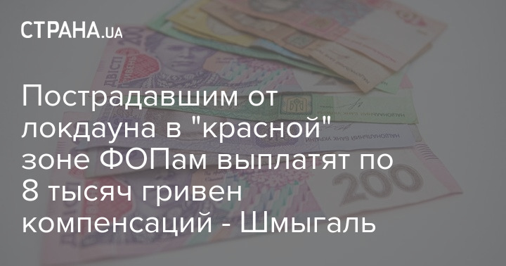 Украинское правительство предлагает выплатить ФОПам и представителям предприятий, которые пострадали от введения жестких ограничений в регионах "красной" карантинной зоны, по 8 тысяч гривен.
