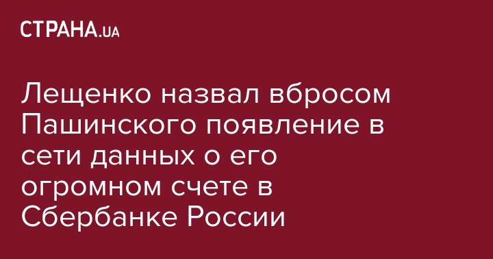 Ранее общественный активист Андрей Дзиндзя опубликовал у себя на странице в соцсети документ, который он назвал выпиской со счета Лещенко в "Сбербанке", предоставленной, якобы, работником банка. В документе говорится, что размер счета Лещенко в дочке российского банка в Украине составлял 22 млн грн.