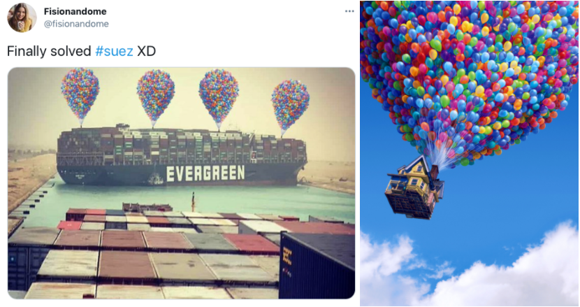 Есть шутники, которые предлагают поднять 400-метровый корабль с помощью шариков, как в фильме студии Pixar "Вверх".