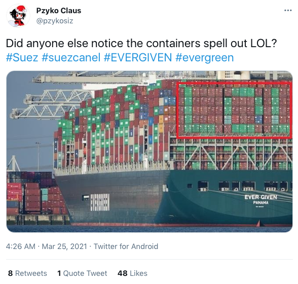 Пользователи шутили также про контейнеры. "Кто-то замечал, что контейнеры составили слово "лол" (с англ. прикол)?