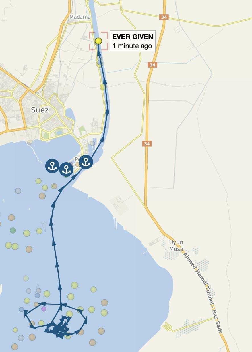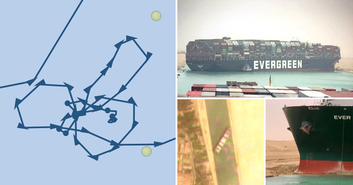 В сети появились фото маршрута этого танкера перед заходом в канал. Он выглядит как фаллос. Маневры по вот такой траектории - не фейк. Оператор судна фирма Bernhard Schulte Shipmanagement назвала это случайным совпадением.