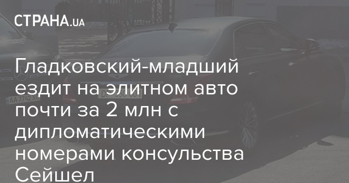 Сын бывшего первого заместителя секретаря СНБО Олега Гладковского и фигуранта скандала с "Укроборонпромом" Олега Гладковского Игорь был замечен на автомобиле с дипломатическими номерами консульства Сейшельских островов.