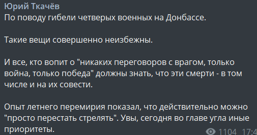"По поводу гибели четверых военных на Донбассе. Такие вещи совершенно неизбежны.