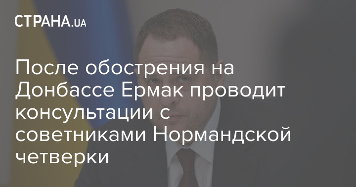 Глава Офиса президента Андрей Ермак сообщил, что в связи с гибелью четырех украинских военнослужащих на Донбассе проводит консультации с политическими советниками лидеров государств - участников Нормандского формата.