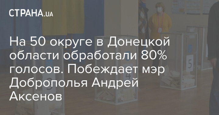 В Донецкой области на округе №50 после обработки 81,25% бюллетеней стало очевидно, что побеждает мэр Доброполья Андрей Аксенов, которого выдвинула пария "Порядок" (один из проектов Ахметова). Он набрал почти 65% голосов.