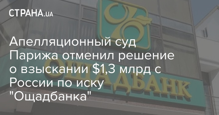 Апелляционный суд Парижа отменил решение о взыскании $1,3 млрд с России по иску "Ощадбанка"