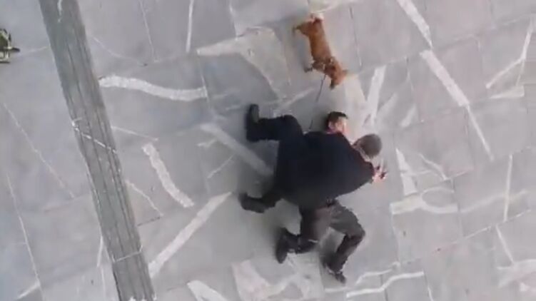 Мужчина также привел вместе с собой собаку, которую держал на поводке. Подойдя к главному входу в здание, он запустил бензопилу и начал кричать "Я устал от локдауна", после чего его задержали и передали полицейским.