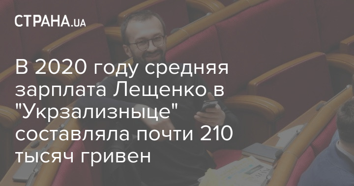 В 2020 году член наблюдательного совета "Укрзализныци" Сергей Лещенко получил 4,78 млн гривен дохода, из них 2,52 млн грн - его гонорар в железнодорожной компании. Таким образом, в месяц от АО он получал примерно 209,6 тысяч грн.
