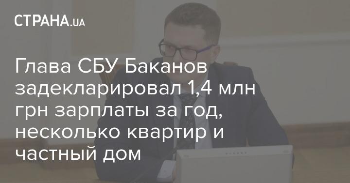 Глава Службы безопасности Украины Иван Баканов за 2020 год задекларировал 1,4 миллиона гривен заработной платы, а его супруга Оксана Лазаренко заработала 360 тысяч.