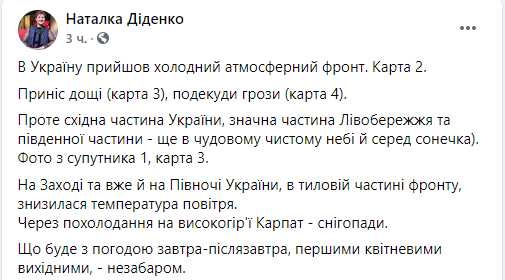Об этом рассказала народный синоптик Наталья Диденко на своей странице в Facebook.