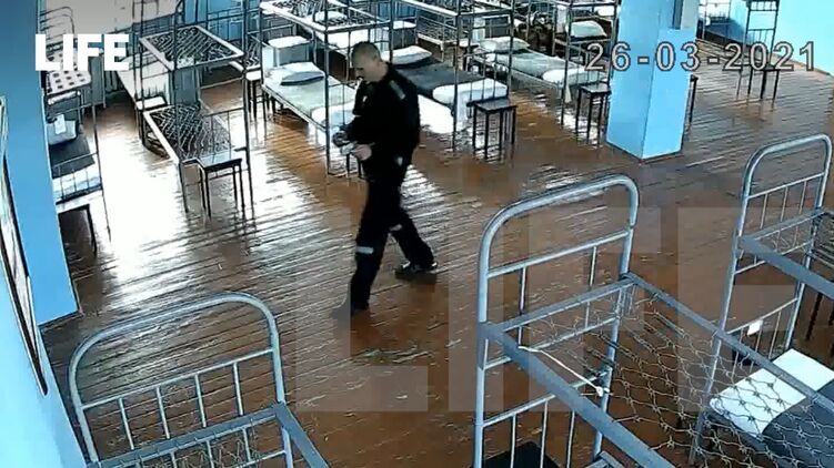 Кадры, как сообщается, сделаны 26 марта. На них человек, похожий на Алексея Навального передвигается по территории второго отряда ИК-2.