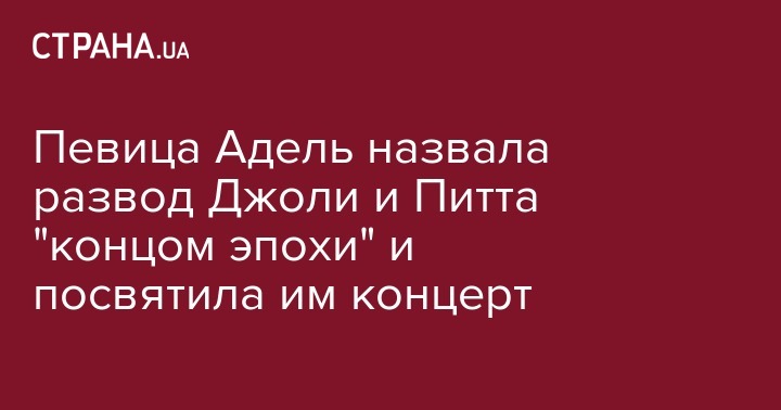 Британская певица Адель посвятила свой концерт американским актерам Анджелине Джоли и Брэду Питту, о разводе которых стало известно во вторник, 20 сентября. Сама певица призналась, что для нее расставание самой известной пары Голливуда стало "концом эпохи". Об этом сообщает ВВС.