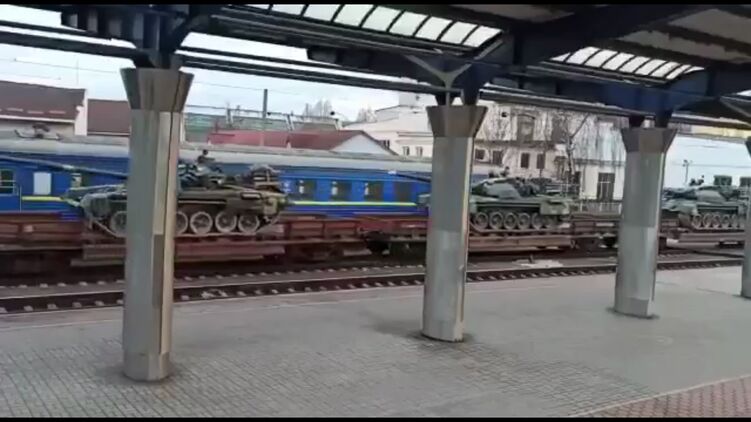 На фоне сообщений о передвижении войск РФ у границы с Украиной в сети начали появляться видео, как эшелоны с украинскими танками едут на Донбасс.