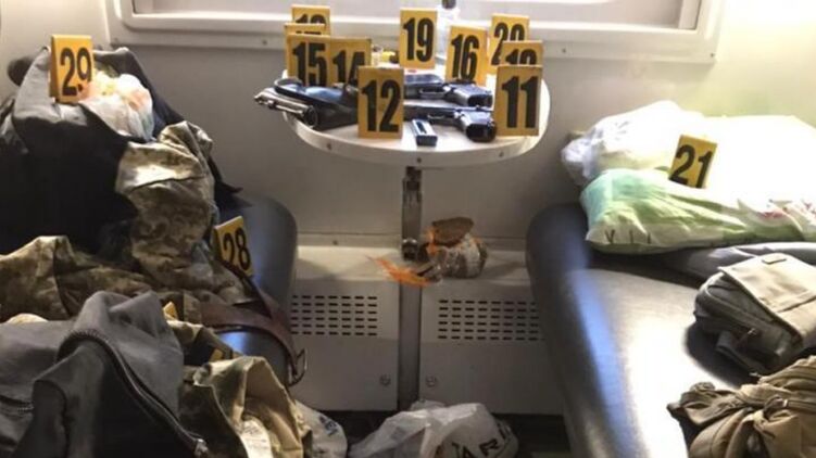 На столе в купе лежат вещественные доказательства. Фото: Нацполиция