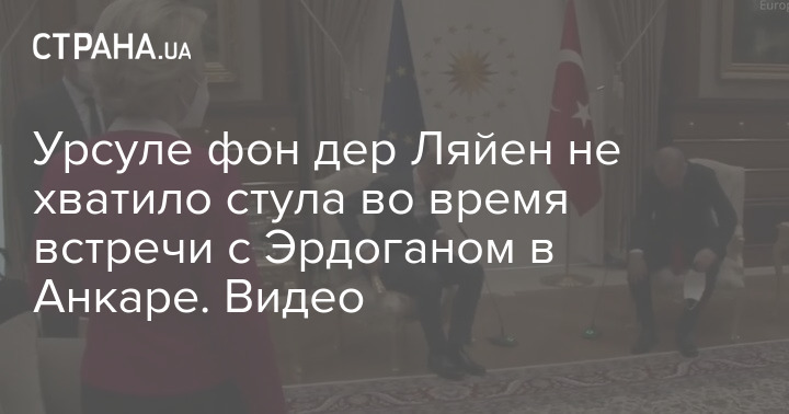 Урсуле фон дер Ляйен не хватило стула во время встречи с Эрдоганом в Анкаре. Видео