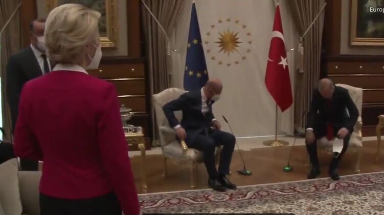 Глава Еврокомиссии Урсула фон дер Ляйен на переговорах с Реджепом Эрдоганом и главой Евросовета Шарлем Мишелем попала в неловкую ситуацию. В Анкаре на встрече президента Турции, глав Евросовета и Еврокомиссии, Урсуле фон дер Ляйен не хватило стула. Стороны были вынуждены рассесться на диванах.