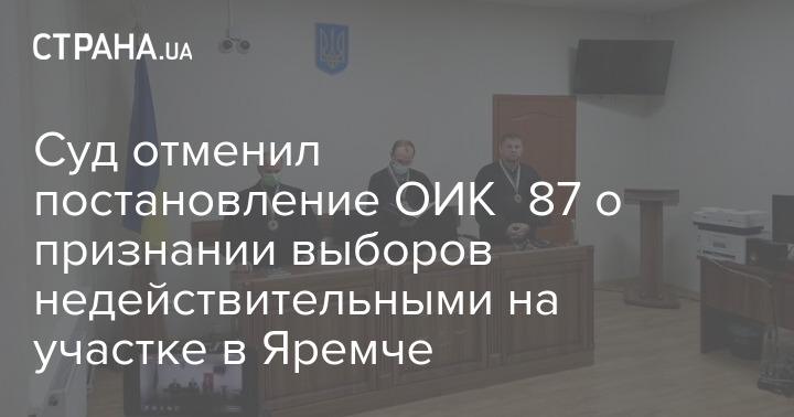 В среду, 7 апреля, Ивано-Франковский окружной административный суд по иску кандидата Александра Шевченко к ОИК №87 полностью удовлетворил исковые требования. Суд признал противоправным и отменил постановление окружной избирательной комиссии №87 от 2 апреля, которым выборы на участки №261027 в Яремче признаны недействительными.
