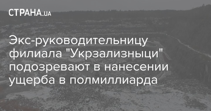 Офис генпрокурора сообщил бывшей исполняющей обязанности директора филиала "Укрзализныци" о подозрении в халатности, приведшей к незаконной добыче ископаемых. В результате окружающей среде было нанесено более 494 млн гривен убытков.