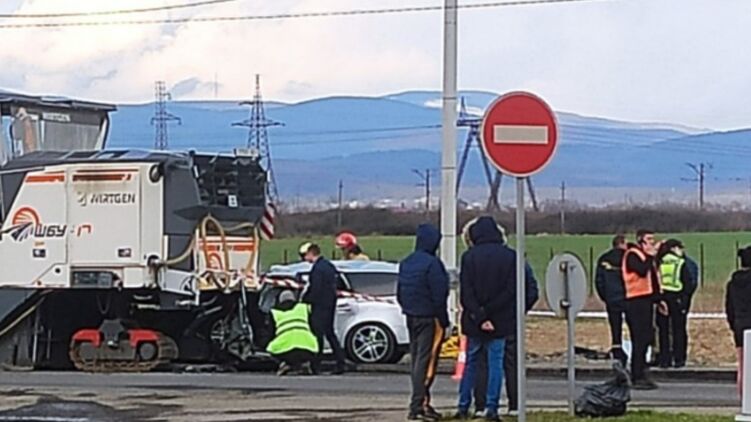На Закарпатье легковушка влетела под дорожный каток, есть погибший. Фото с места ДТП