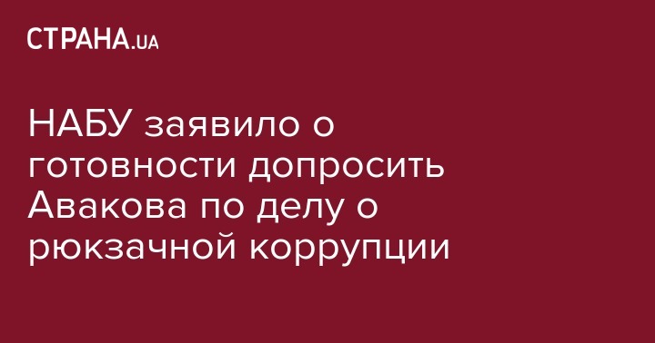 Директор Национального антикоррупционного бюро Украины (НАБУ) Артем Сытник заявил о готовности его ведомства допросить главу МВД Арсена Авакова в рамках расследования злоупотреблений при организации тендера на закупку Министерством внутренних дел Украины рюкзаков для Национальной гвардии, сообщают Украинские новости.