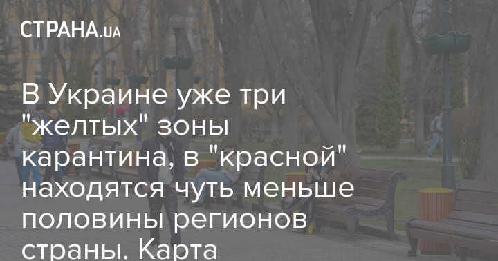 В Украине уже три "желтых" зоны карантина, в "красной" находятся чуть меньше половины регионов страны. Карта