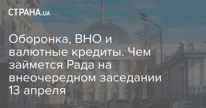 На внеочередном заседании во вторник, 13 апреля, Верховная Рада рассмотрит вопросы о совершенствовании оборонных заказов, установлении порогового балла внешнего независимого оценивания (ВНО) и продления моратория на взыскание долгов по валютным кредитам.