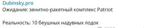 Реальность: 10 беушных надувных лодок", - пишет нардеп Александр Дубинский, напоминая о недавней военной помощи от Штатов