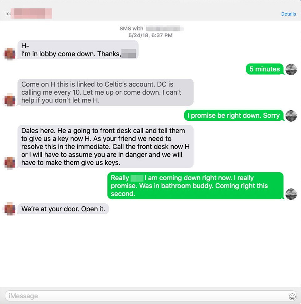 В сообщениях офицер секретной службы из Лос-Анджелеса предупредил Хантера, что ему "придется предположить, что тот в опасности" и получить ключи от комнаты, если он не выйдет.