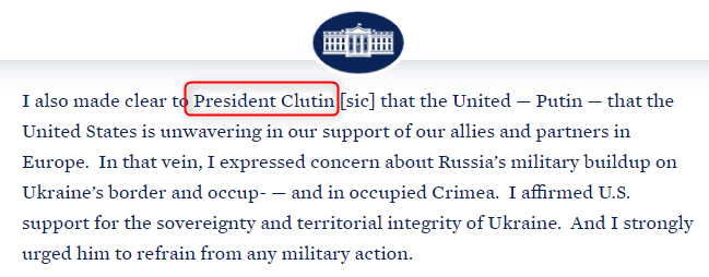 В нем Байден неожиданно назвал Путина "Клютиным", что зафиксировано даже в стенограмме Белого дома. Правда, потом поправился. В Украине по этому поводу уже начали шутить, что это сокращенное от "клятый Путин".