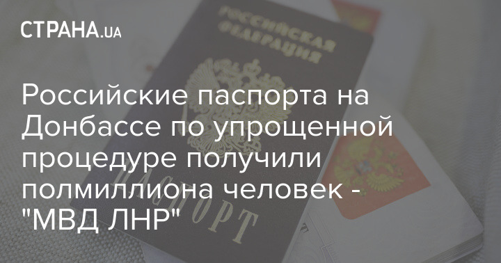 "Проведена колоссальная работа, если говорить о двух республиках - это более 500 тысяч паспортов (полученных по упрощенной процедуре - Ред.). Но помимо этого жители ЛДНР получали российское гражданство и по другим программам. Можно говорить о гораздо большей цифре", - сказал представитель "республики".