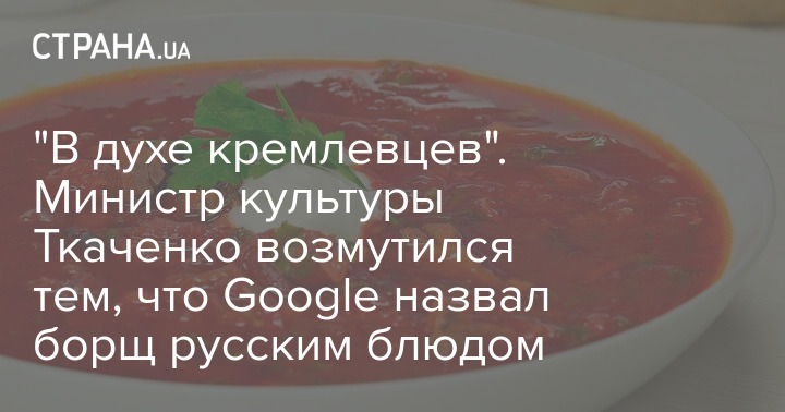 "В духе кремлевцев". Министр культуры Ткаченко возмутился тем, что Google назвал борщ русским блюдом