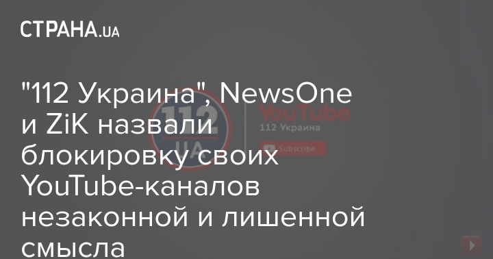 "112 Украина", NewsOne и ZiK назвали блокировку своих YouTube-каналов незаконной и лишенной смысла